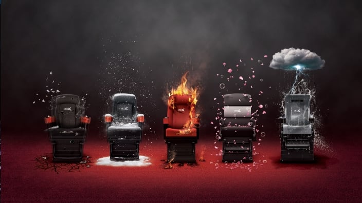 体感シート様々な環境効果で感じられる体感型シアター。4DXは、映画のシーンに合わせて動くモーションシートに加え、風や光、霧、香り、振動など様々な環境効果を体感できる五感体験型の特別な上映システムです。座席に座っているだけで、テーマパークのアトラクションのような感覚をお楽しみいただけます。 -